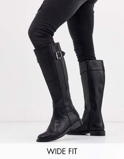 ASOS DESIGN Wide Fit Constance flat riding boots in black Very well made.
