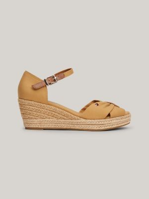 Tommy Hilfiger Peep Toe Cork Wedge Sandals Navy w Tan Gold Trim Canvas WO SZ 9 eBay Very well made.