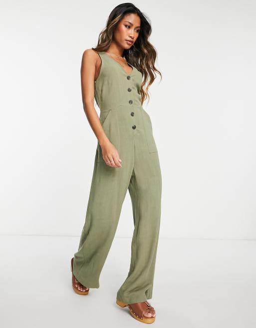 Topshop utility pocket casual jumpsuit in khaki Very well made.