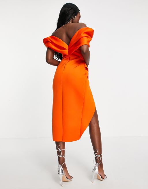 ASOS DESIGN 2 piece off shoulder pencil wrap tuck midi dress in Very well made.