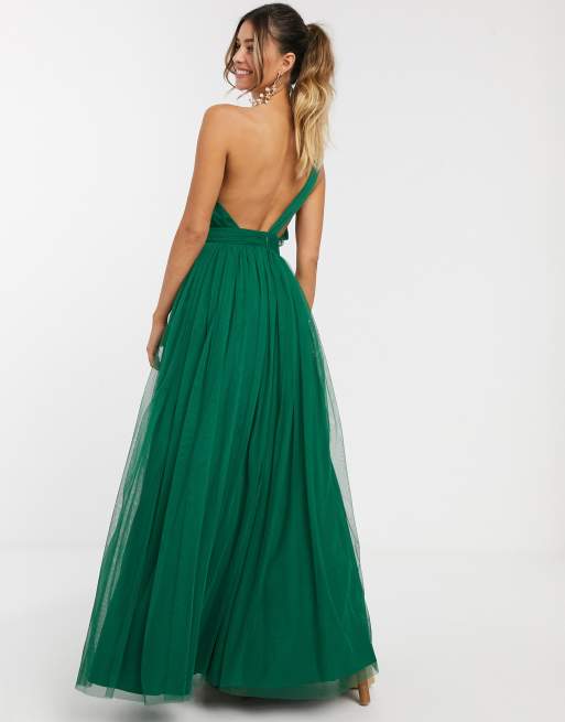 ASOS DESIGN Petite one shoulder tulle maxi dress in forest green Very well made.