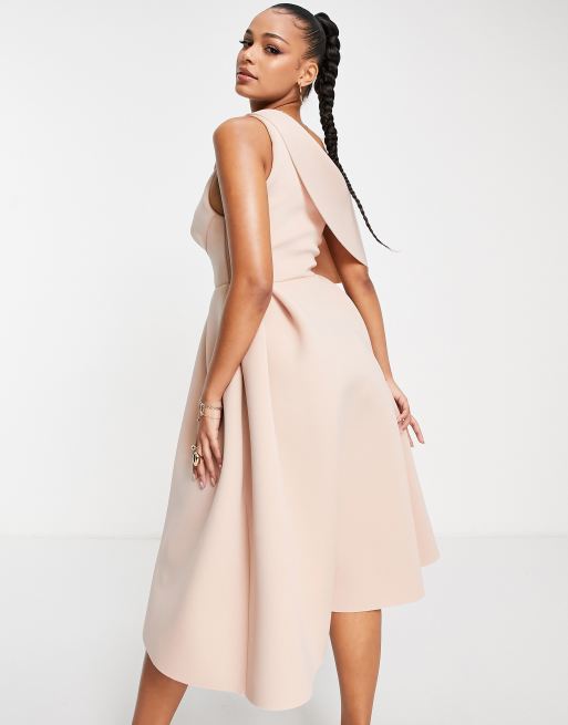 ASOS DESIGN bare shoulder prom midi dress in pale blush Very well made.