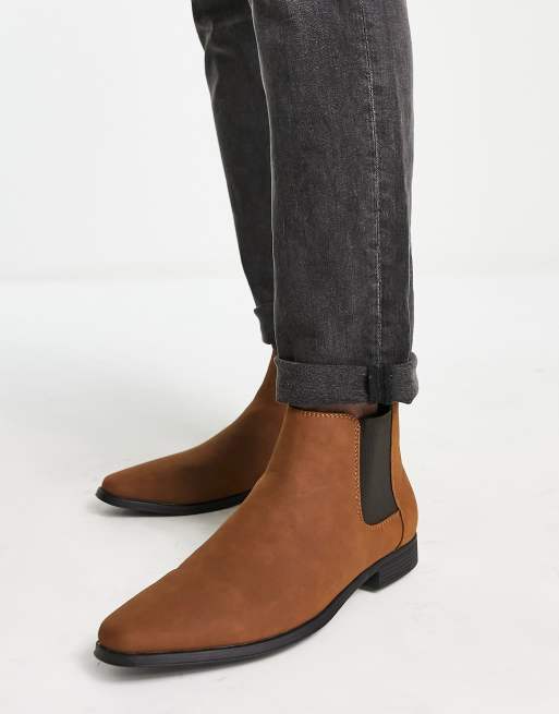 ASOS DESIGN chelsea boots in tan faux suede Very well made.