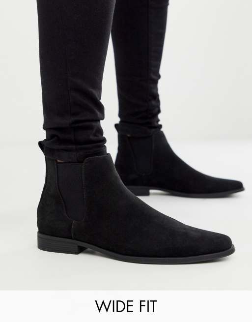 ASOS DESIGN Wide Fit chelsea boots in black faux suede Very well made.