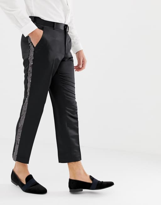ASOS DESIGN slim crop smart trouser in black satin with sequin Very well made.